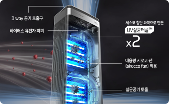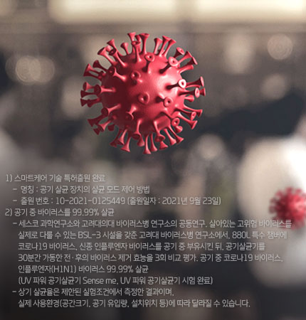 강력한 UV-C 살균램프로 공기 중 바이러스 99.99% 살균