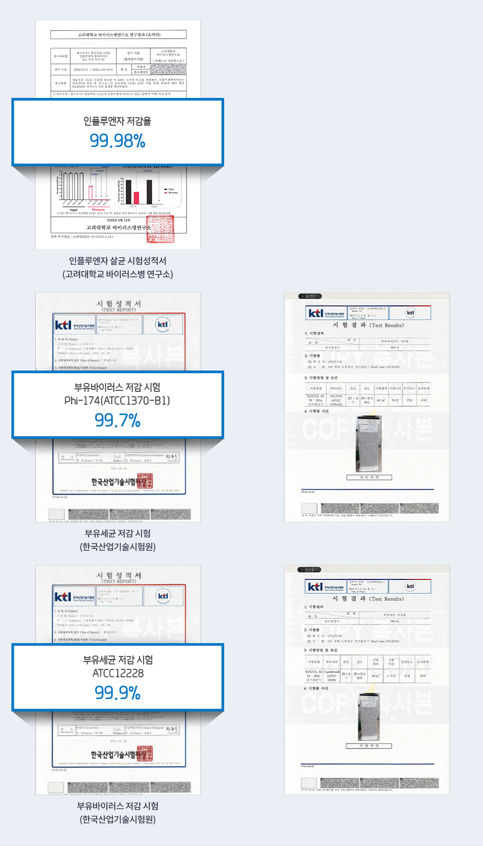 독감 바이러스와 폐렴균 살균 검증!매년 유행하는 인플루엔자(H1N1) 독감 바이러스는 물론,